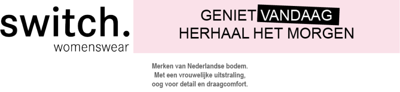 Welkom bij Switch, dé hotspot voor damesmode in Nijmegen! Bij ons ontdek je de nieuwste collectie, met zorgvuldig geselecteerde dameskleding van topmerken uit Nederland, zoals Jansen Amsterdam, MSCW, &Co Woman, Rino & Pelle, Poools, Zoso, Another Woman Skovhuus en meer. Eigenaresse Brenda heeft elk item persoonlijk uitgekozen, perfect afgestemd op de unieke stijl van onze klanten.