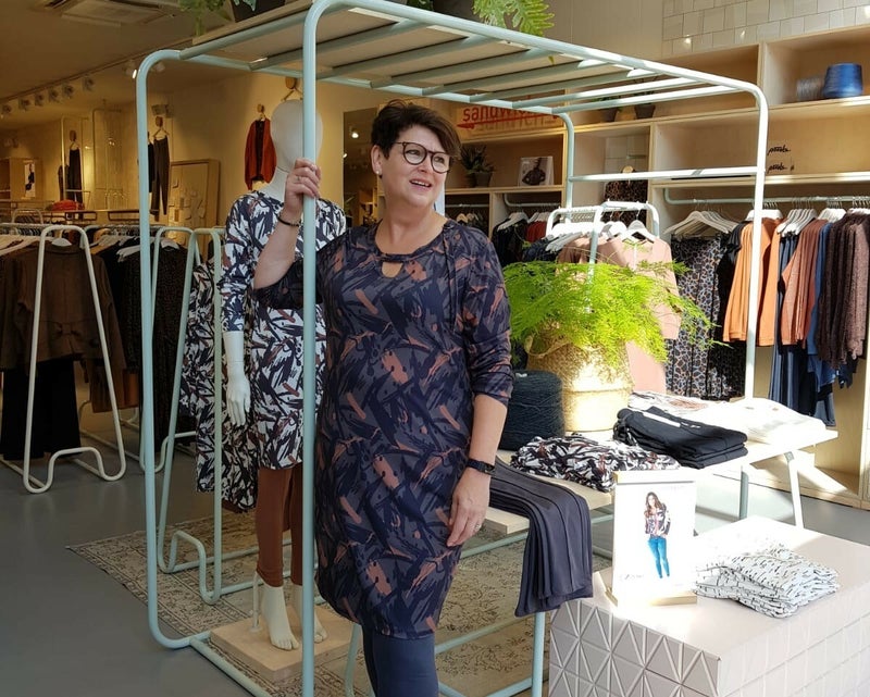 Anja woont in Wijchen en is een ervaren styliste. ,,Ik werk 27 jaar in de mode, waarvan 14 jaar bij Sandwich_. Al die jaren samen met Brenda die nu eigenaar is. We zeggen wel eens gekscherend: we houden het samen langer vol dan met onze huwelijken”, zegt ze lachend. ,,We weten precies wat we aan elkaar hebben. Ik vind het heel belangrijk dat het hier zo gezellig is. Klanten zien hoeveel lol wij samen hebben.”